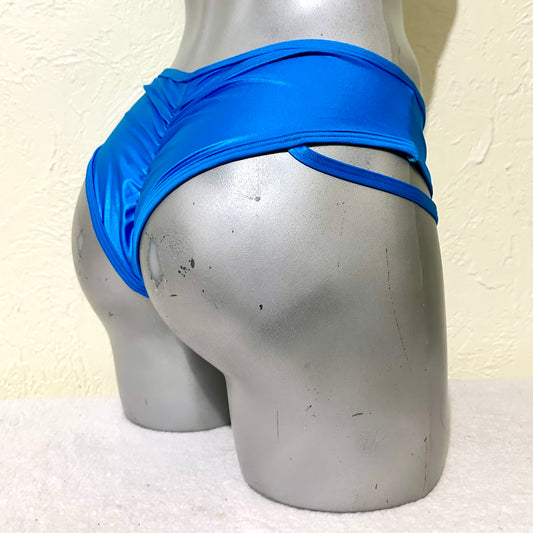 Cachetero arnés lateral nude satinado/azul